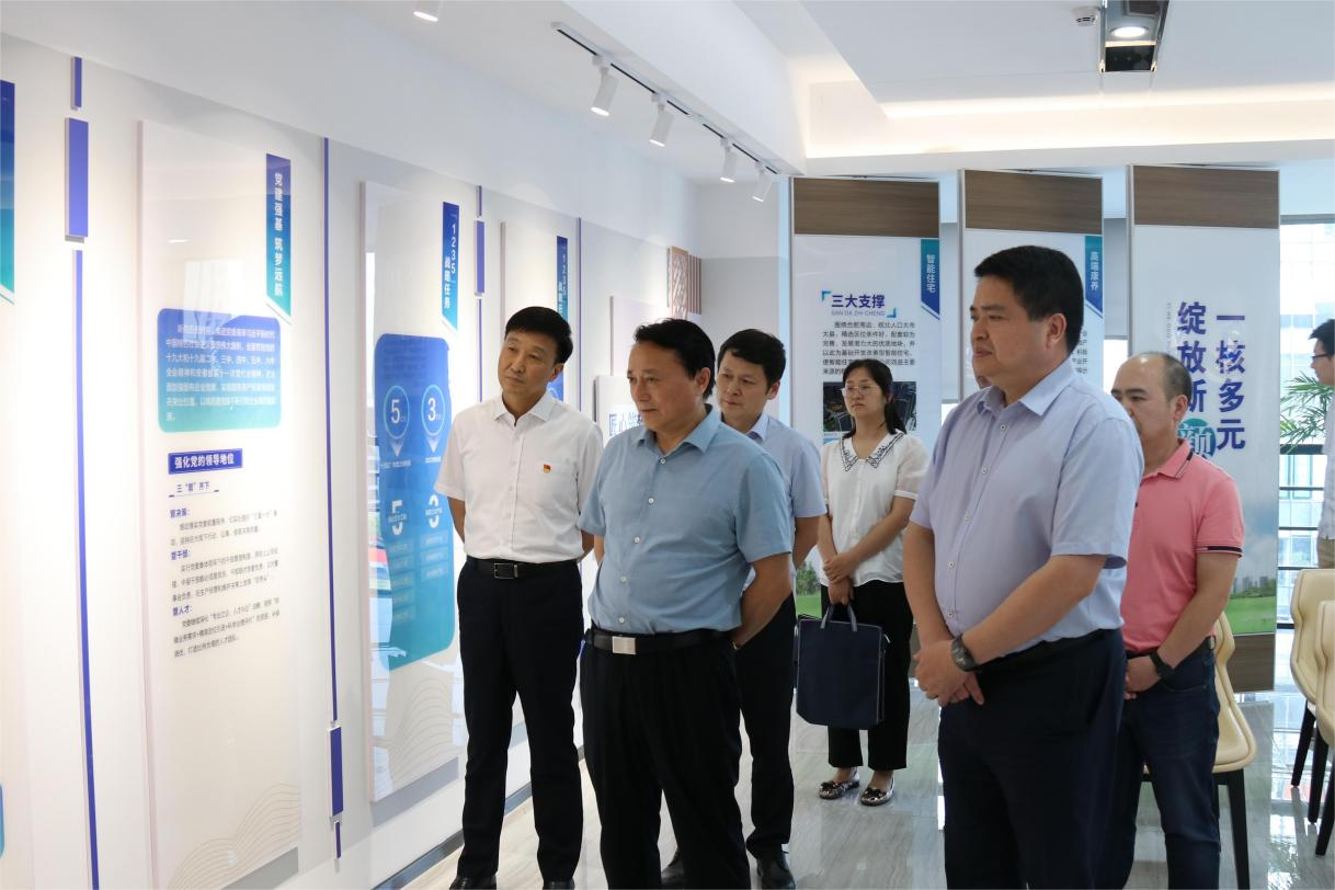 羅太忠熱情接待了朱宜存一行,陪同參觀了集團所屬徽鹽地產(chǎn)集團黨建品牌展廳與企業(yè)文化長廊。調(diào)研組一行詳細(xì)了解了集團公司近年來改革轉(zhuǎn)型發(fā)展歷程、“十四五”戰(zhàn)略發(fā)展規(guī)劃和未來產(chǎn)業(yè)布局等方面情況。