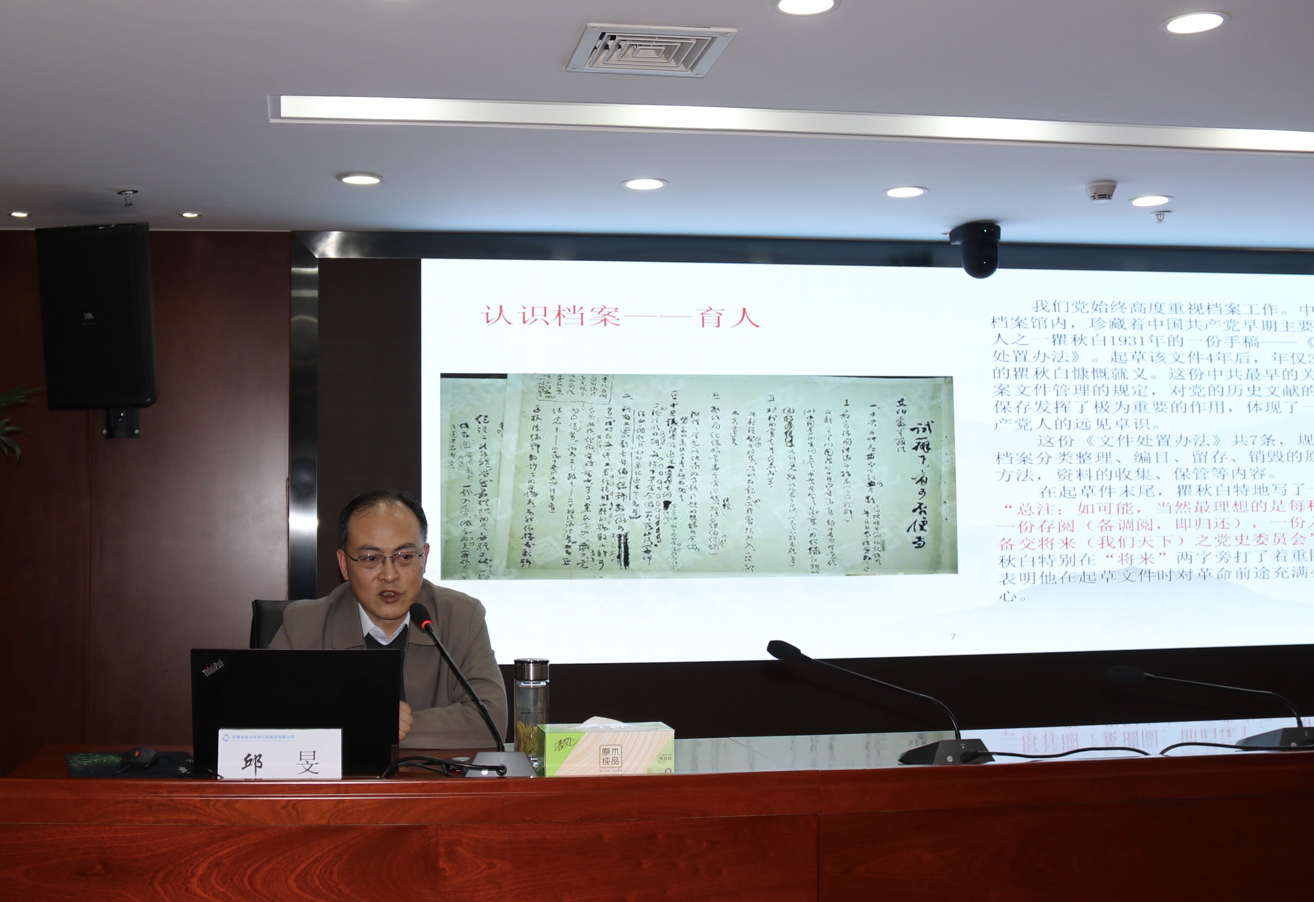 本次培訓邀請到省委辦公廳檔案管理一處處長、一級調研員邱旻,為大家作“強化法治思維提升企業(yè)檔案工作規(guī)范化管理水平”專題授課。課程圍繞習近平總書記對檔案工作重要批示指示精神,解讀新修訂的檔案法內容與特點,就如何落實檔案工作責任制、健全檔案管理相關制度、明確歸檔范圍和保管期限、推動檔案開放與利用、加強檔案信息化建設等進行輔導。本次培訓主題鮮明、內容豐富、事例生動、旁征博引,既有理論高度、又有實踐深度,具有很強的理論性,指導性和可操作性。