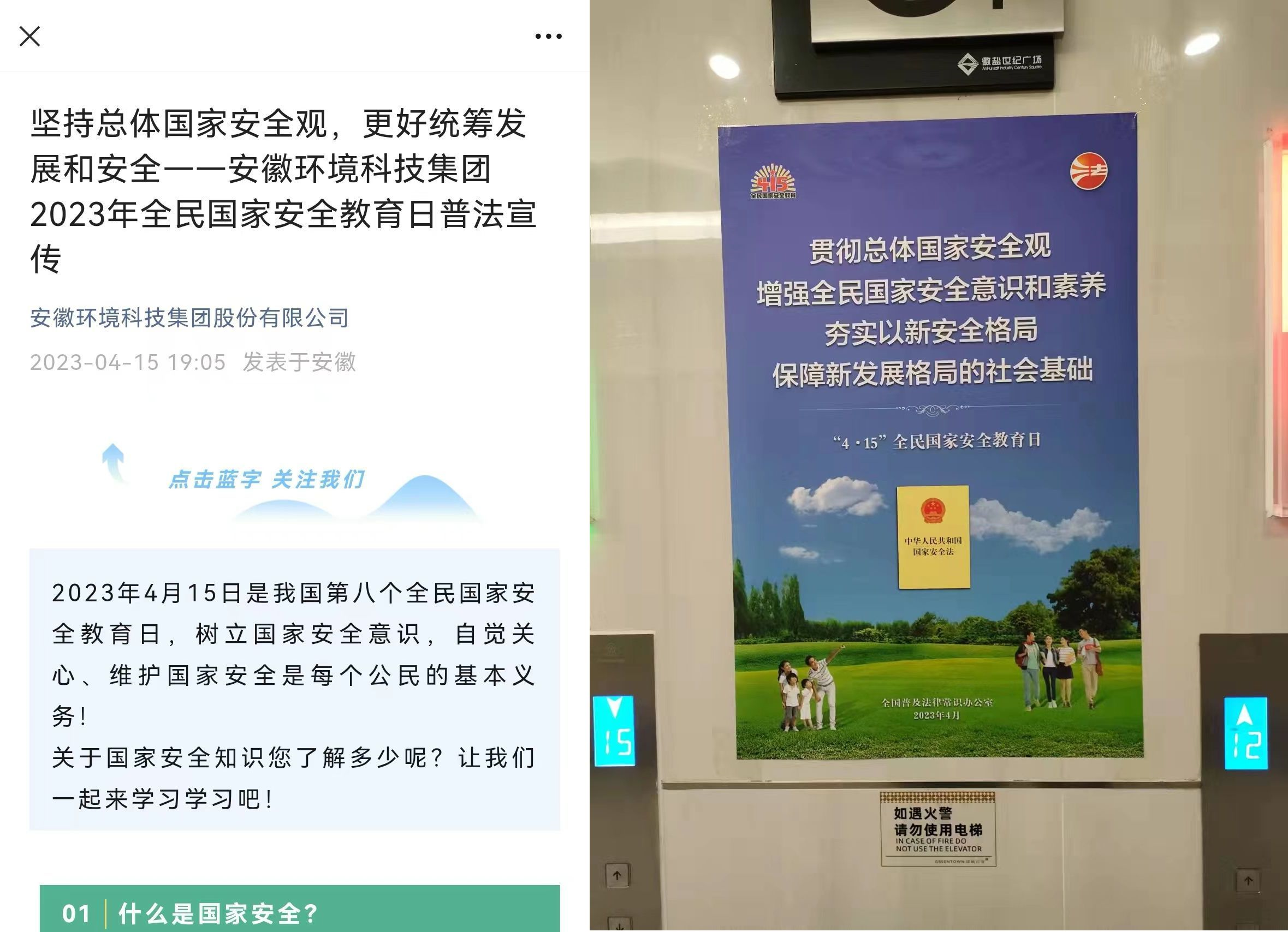 環境公司、發展公司、地產集團在微信公眾號、官網政策法規平臺上傳國家安全相關法律法規,在辦公場所張貼宣傳海報。