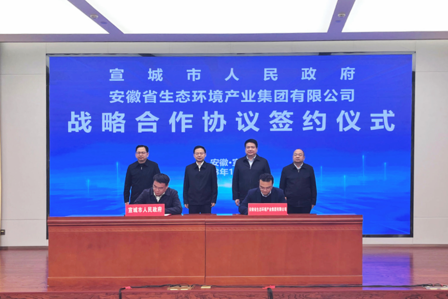 12月5日,省生態環境集團與宣城市人民政府簽訂戰略合作協議。宣城市委書記李中,集團公司黨委書記、董事長羅太忠出席簽約儀式并講話。
