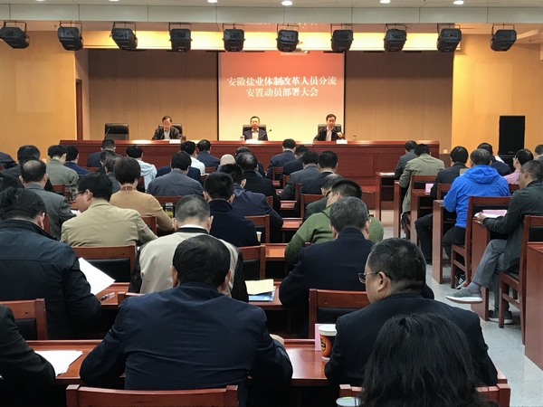 2018年10月30日,省集團公司召開安徽鹽業體制改革人員分流安置動員部署大會,黨委書記、董事長馬占文出席會議并講話。會議由黨委副書記、紀委書記王思軍主持,各市縣公司主要負責同志、各市公司人事部門負責人、本部各部門主要負責人參加會議。