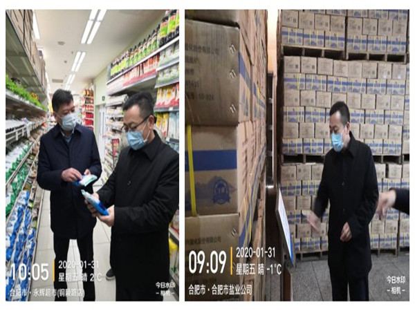 1月31日,省鹽業集團公司黨委書記、董事長馬占文,副總經理邱軍赴合肥市鹽業公司了解疫情期間食鹽供應情況,慰問一線員工,要求各市縣鹽業公司強化擔當,在非常時期扛起非常之責,全力保障食鹽供應和支持配合全省疫情防控工作。