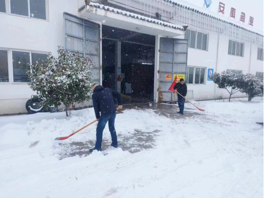 淮南鹽業(yè)公司職工清掃倉庫前積雪,保障運送暢通。