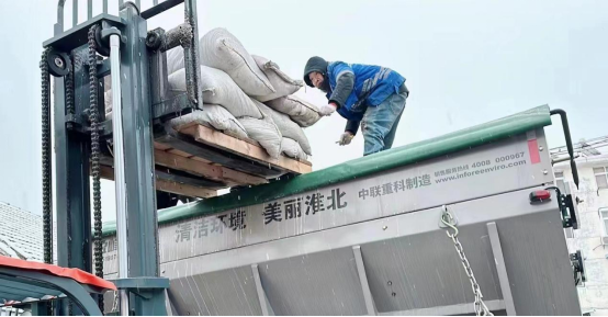 合肥鹽業(yè)公司全體職工全員上崗,開展融雪鹽配送工作。